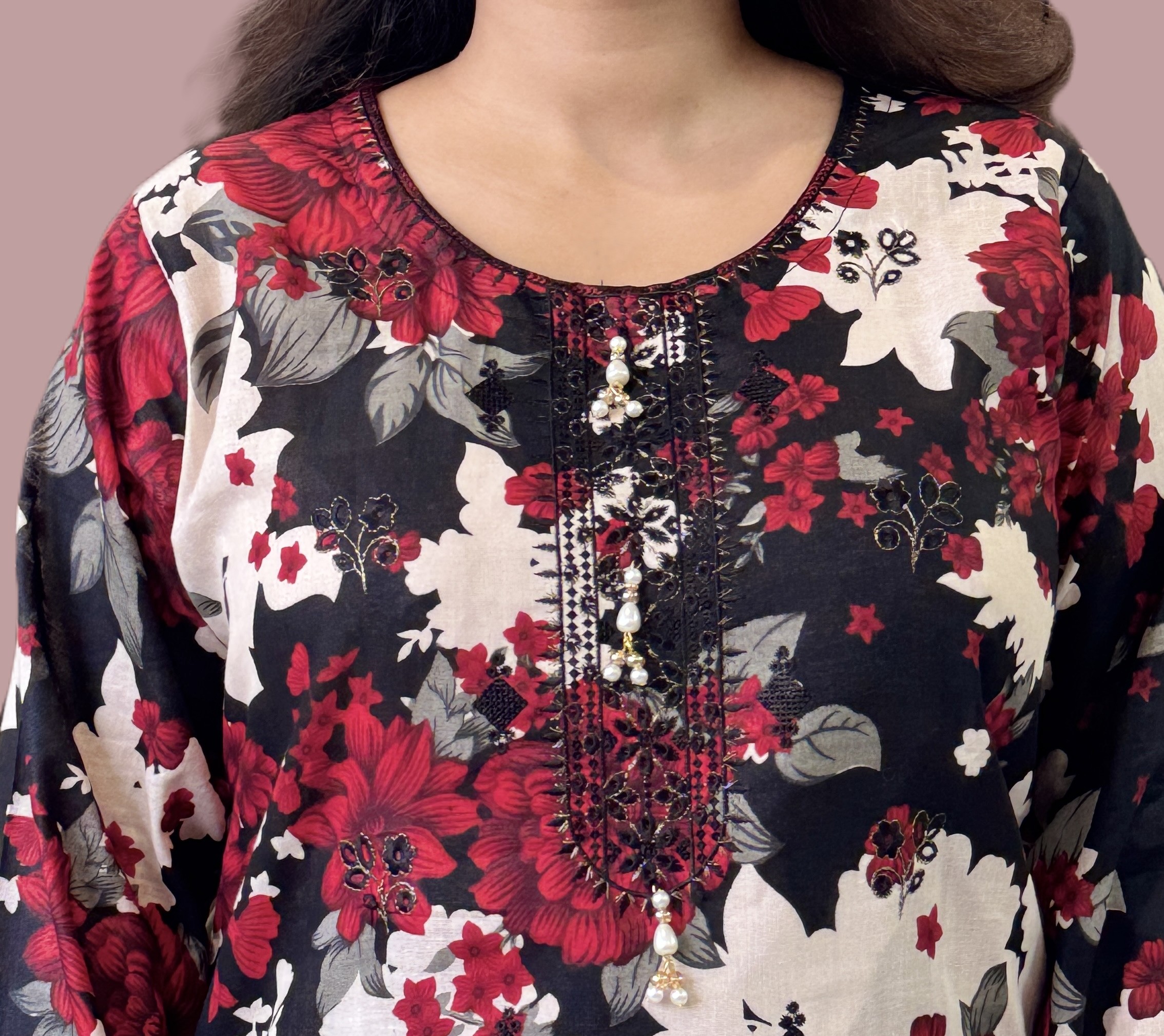 - Shirt: Cotton Embroidered shirt with detailed embroidered neckline and daman