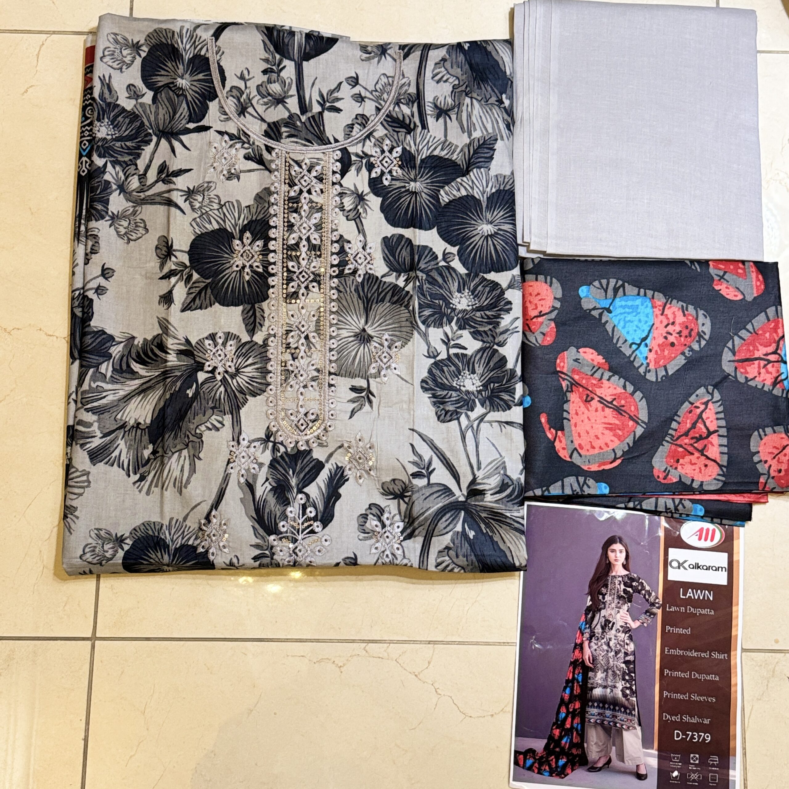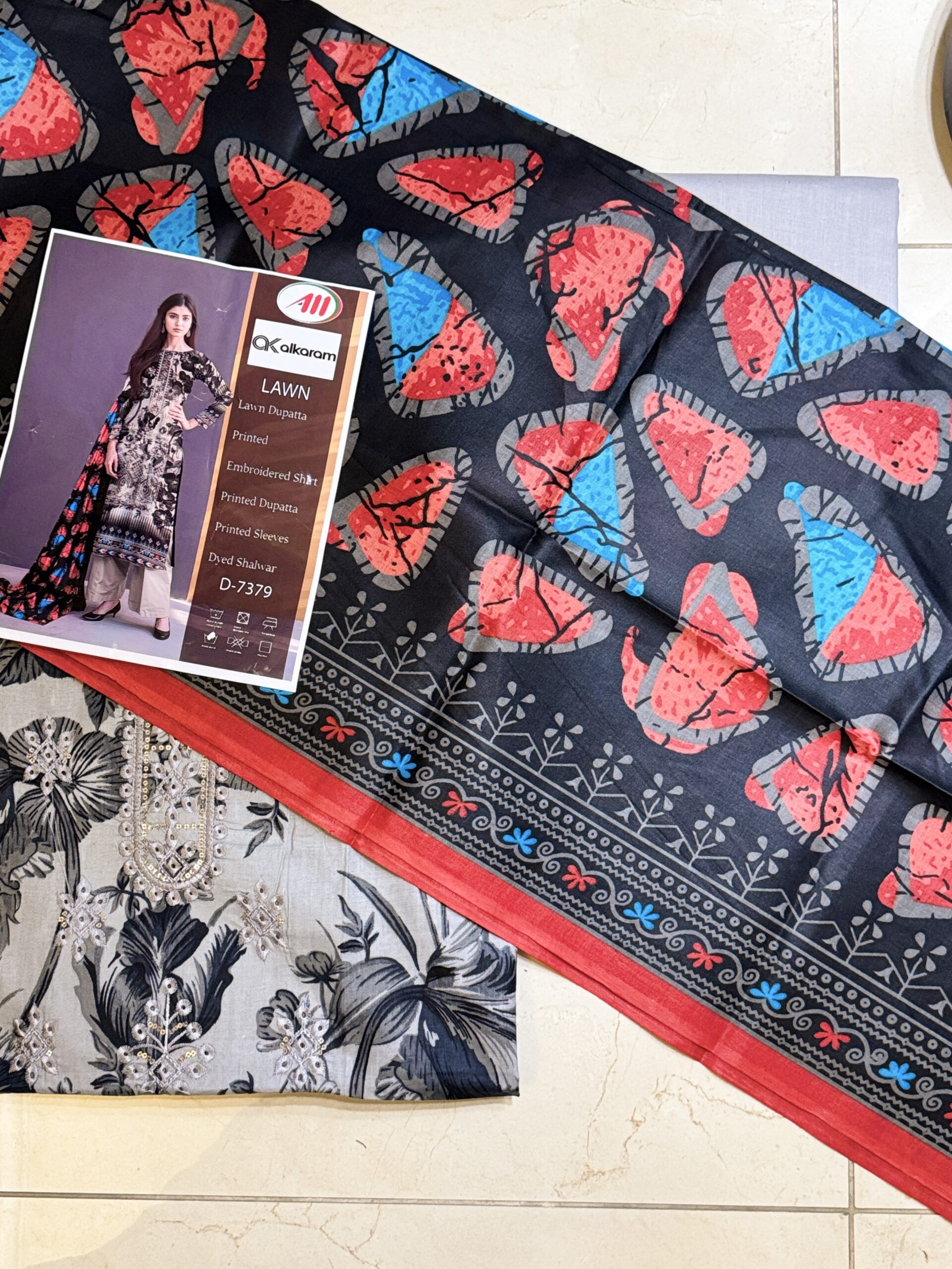 • Dupatta: Lawn 2.5 meter printed dupatta (Design likely coordinates with shirt)